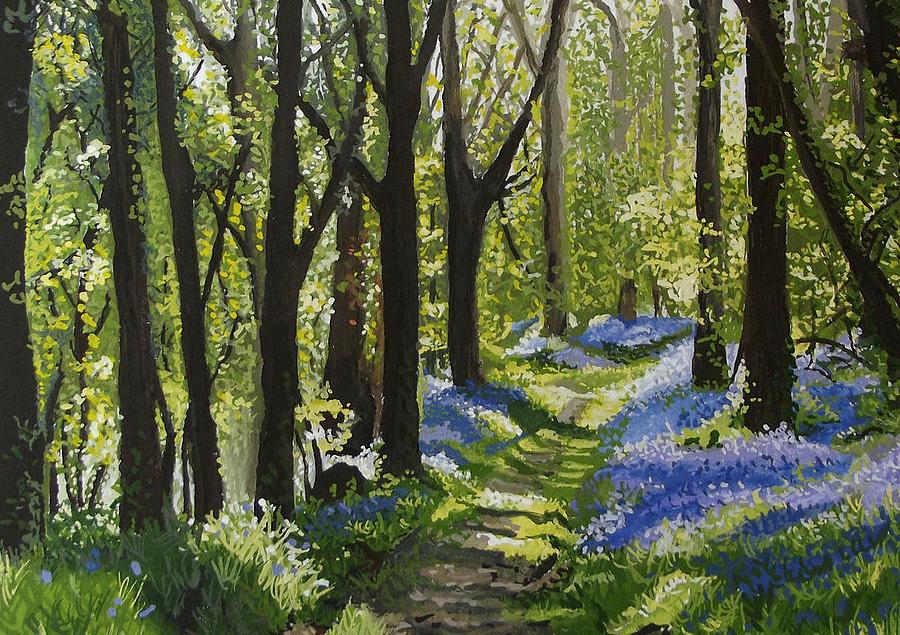 and crenulated blades of ferns rise from a wet and mossy ground.